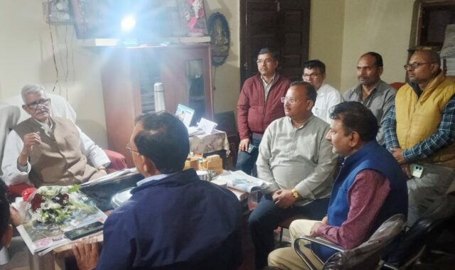 उन्नाव। विशिष्ट बी टी सी 2004 चयन प्रक्रिया द्वारा नियुक्त शिक्षक शिक्षिकाओं को पुरानी पेंशन से आच्छादित करने को लेकर विधानसभा परिषद में मुद्दा उठाने वाले लोकप्रिय शिक्षक विधायक राज बहादुर सिंह चंदेल से उनके आवास पर पहुँच कर शनिवार को विशिष्ट बीटीसी के तहत नियुक्त शिक्षकों ने मुलाकात कर उनका आभार व्यक्त किया। शिक्षक विधायक राज बहादुर सिंह से मुलाक़ात के दौरान चयन व पात्रता के सम्बंध मे बारीकियों की चर्चा की। उन्होंने आश्वास्त किया कि वे इस संबंध मे अपर मुख्य सचिव दीपक कुमार से बात करेंगे और अवसर मिला तो मुख्यमंत्री के सामने भी प्रकरण रखेंगे। प्रतिनिधिमंडल में अरुणकुमार, अमित सिंह, जिला महामंत्री, अनिल कनौजिया वरिष्ठ उपाध्यक्ष, प्रदीप सोनकर, डॉली निगम, सारिका, अतुल शुक्ला, महेंद्र कुमार, धर्मेंश श्रीवास्तव, लक्ष्मी शंकर पांडेय, अरुण कुशवाहा, राधे गोविंद, राजीव दीक्षित, गोवर्धन सिंह, प्रभात रस्तोगी समेत आदि शिक्षक मौजूद रहे।