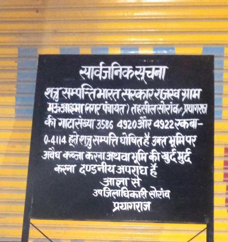 जानकारी के मुताबिक मऊआइमा नगर पंचायत के बहराना चौराहे पर गाटा संख्या 3586, 4920, 4922 शत्रु संपत्ति पर अवैध रूप से निर्माण कार्य कराया जा रहा था सूचना मिलने पर स्थानीय लेखपाल राजकुमार सागर पुलिस बल के साथ पहुंच कर काम को रुकवाया। लेखपाल राजकुमार सागर के मुताबिक शत्रु संपत्ति पर कुछ लोगों द्वारा अवैध रूप से कब्जा किया जा रहा था जिसे तत्काल रुकवाया गया है। सरकारी भूमि पर अवैध कब्जे की कोशिश करने वालों के खिलाफ मऊआइमा थाने में लिखित शिकायत की जा रही है। भूमाफियाओं के विरुद्ध नियमानुसार उचित कार्रवाई अमल में लाई जाएगी।