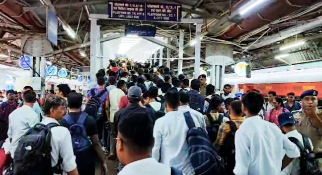 लोक सेवा आयोग द्वारा आयोजित परीक्षा के दौरान प्रयागराज जंक्शन पर उमड़ी भारी भीड़