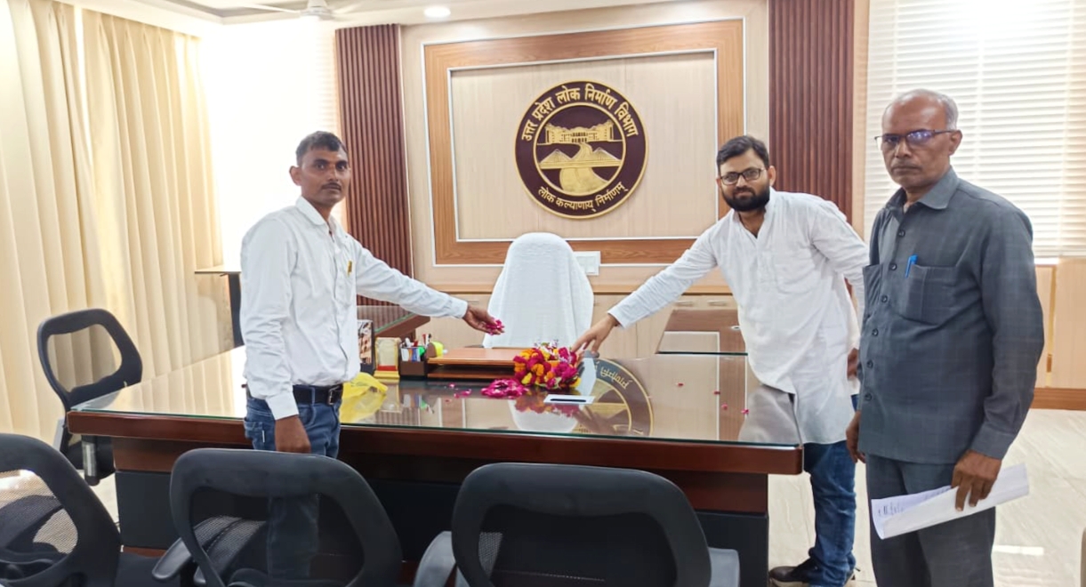 मुख्य अभियंता की अनुपस्थिति में उनके कुर्सी के सामने किया गया माल्यार्पण।