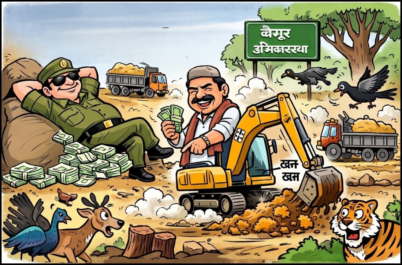 मिर्जापुर। कैमूर वन्यजीव अभयारण्य अंतर्गत हलिया–चौरा क्षेत्र में अवैध मोरंग खनन और सड़क निर्माण को लेकर जारी विवाद ने नया मोड़ ले लिया है। प्रतिपालक चुर्क भास्कर प्रसाद पाण्डेय के पक्ष में प्रकाशित कराई गई खबर—जिसमें रिटायर वन क्षेत्राधिकारी अवधनारायण मिश्रा को अवैध अतिक्रमण एवं खनन का “मास्टरमाइंड” बताया गया— जो अब सवालों के घेरे में है। ग्रामीणों और विभागीय सूत्रों का कहना है कि यह खबर मूल प्रकरण से ध्यान भटकाने और जिम्मेदारी स्थानांतरित करने की कोशिश प्रतीत हो रही है।