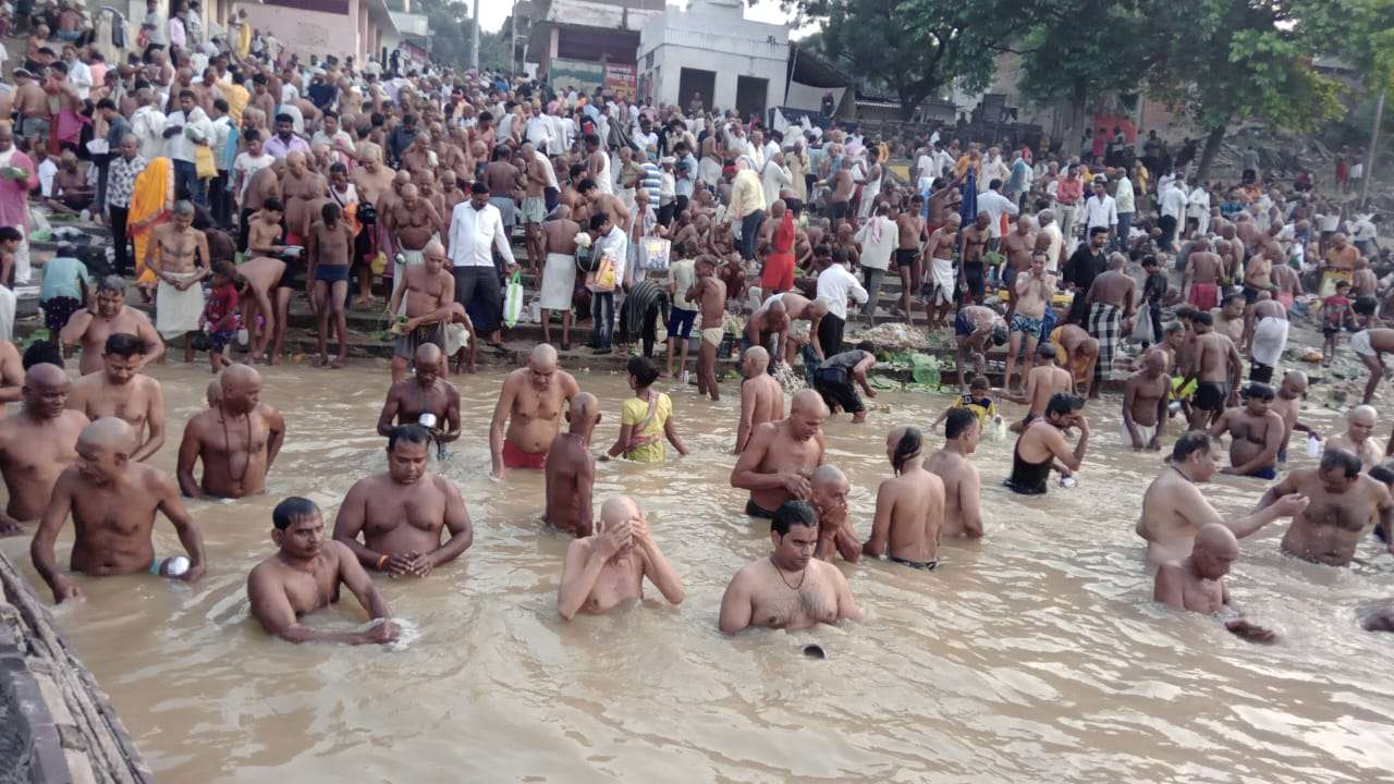 गंगा घाट पर उमड़ी भीड़, विधि विधान से पितरो को श्राद्ध