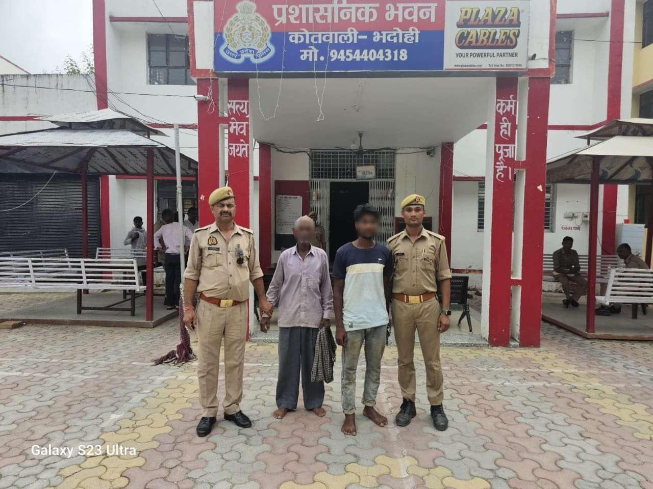 पुलिस अधीक्षक भदोही डा.मीनाक्षी कात्यायन ने गैरइरादतन हत्या की घटना में शामिल आरोपियों की शीघ्र गिरफ्तारी हेतु निर्देश के क्रम में शुक्रवार को थाना भदोही पुलिस टीम द्वारा गैर इरादतन हत्या के आरोपी वीरेंद्र कुमार गौतम पुत्र अशोक गौतम, श्यामलाल निवासी नेवादा कला थाना भदोही जनपद भदोही को नेवादा कला पेट्रोल पंप के पास से गिरफ्तार कर विधिक कार्यवाही करते हुए अभियुक्तों का चालान सम्बन्धित न्यायालय किया गया।