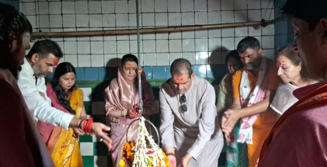 भदोही। देश के शीर्ष उद्यमी मुकेश अंबानी की कंपनी रिलांयस के सी.ए. राजेश चतुर्वेदी सोमवार को भदोही जिले के गोपीगंज नगर स्थित बाबा बड़े शिव धाम पहुंचे। यहां भाजपा नेता डा.अजय शुक्ला के नेतृत्व में परिजनों समेत शिव परिवार और पंडित पुरोहितों ने पुष्पवर्षा और शंखनाद कर उनका स्वागत किया। बाबा बड़े शिव दरबार में वैदिक मंत्रोच्चार के बीच उन्होंने सपत्नीक दर्शन पूजन करने के साथ बाबा बड़े शिव का अभिषेक किया।